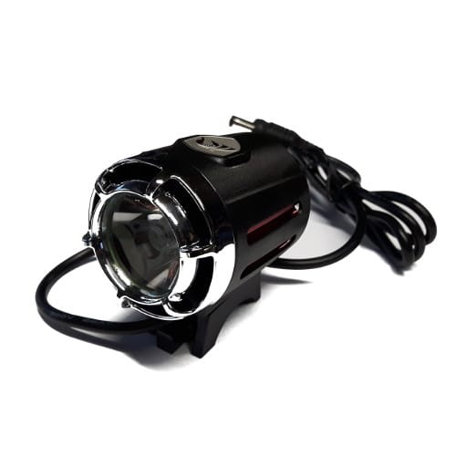 I pakken får du en adapter til opladning. En elastik og strop. Som kan bruges til, at fastgøre lygten på cyklen eller også på panden alt afhængigt af ønske.